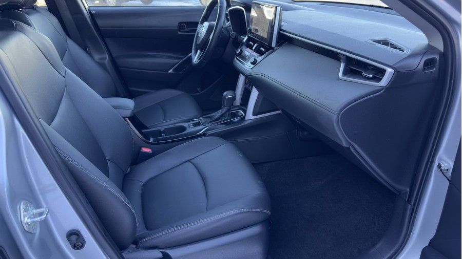 Powered by a 2.0L 4-cylinder engine and paired with an automatic transmission, this Corolla Cross XLE delivers smooth, efficient performance with the added confidence of all-wheel drive. With only 4,856 km, a silver exterior, and a black leather interior, it presents nearly like new. Features include dual-zone climate control, adaptive radar cruise control, heated seats, heated steering wheel, heated wipers, Apple CarPlay, Android Auto, wireless phone charging, keyless entry with push-button start, auxiliary power ports, and a sunroof. Navigation is available as an option.
