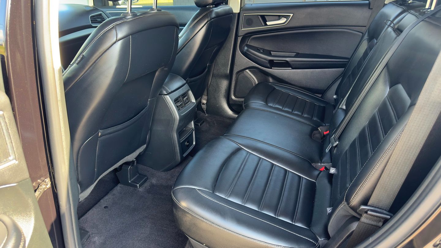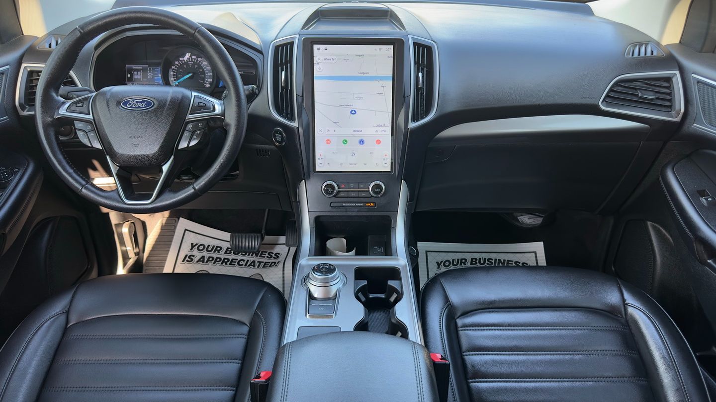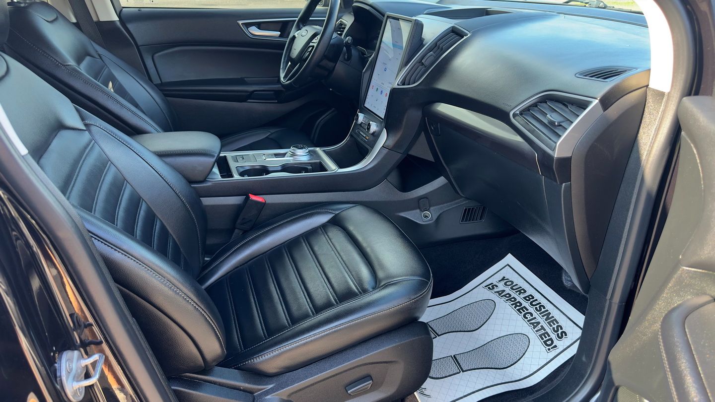 Powered by a 2.0L turbocharged 4-cylinder engine and paired with an automatic transmission, this Edge SEL offers a smooth, responsive drive with all-wheel-drive capability for year-round confidence. With 88,414 km, a black exterior, and a black leather interior, it presents a sleek and understated look. Features include navigation, dual-zone climate control, radar cruise control, Apple CarPlay, Android Auto, SiriusXM, keyless entry with push-button start, remote start, rear parking sensors, auxiliary power outlets, and a reverse camera.