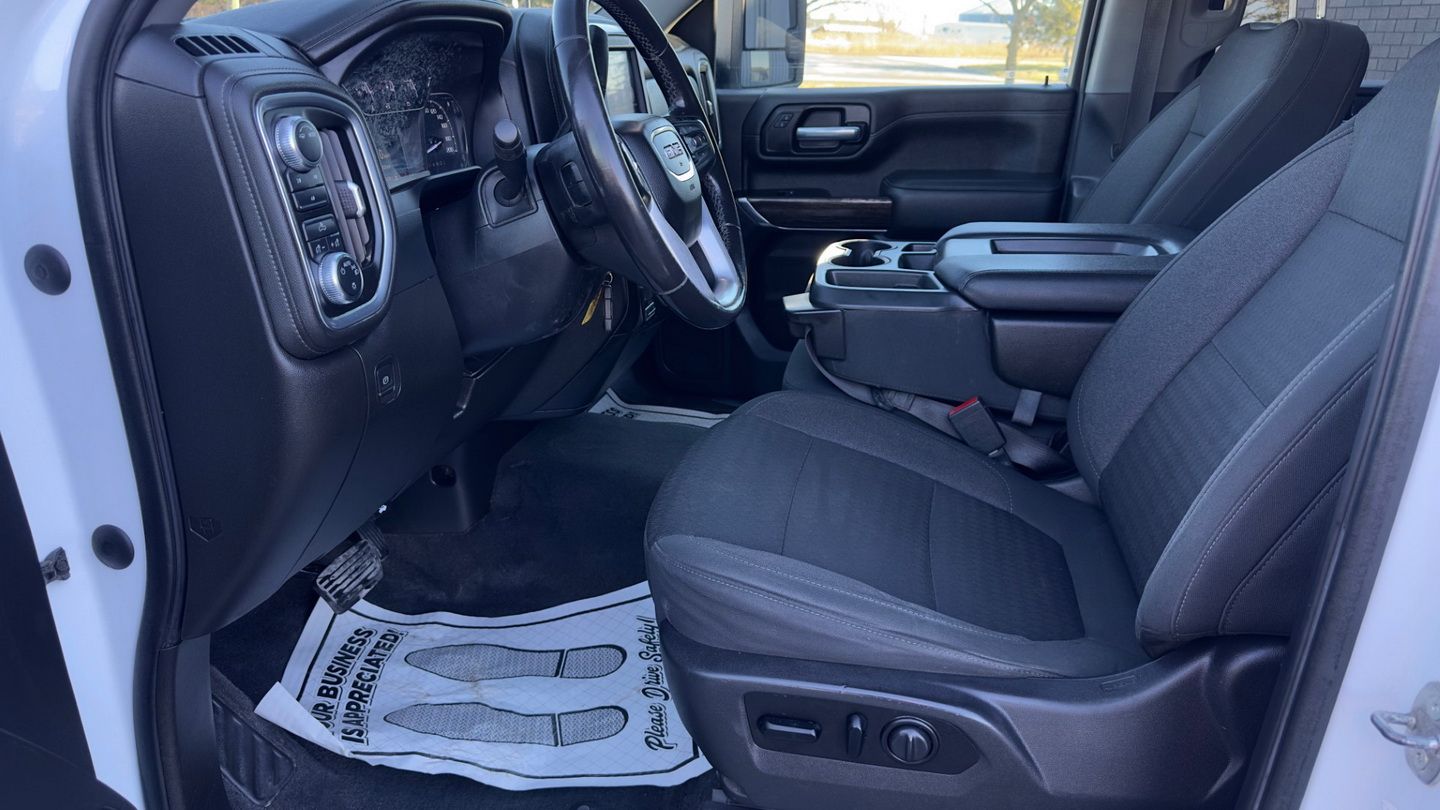 Powered by a 6.6L V8 diesel engine and paired with an automatic transmission, this Sierra 2500HD SLE is built for serious work and towing. With only 66,618 km, a white exterior, and a black cloth interior, it presents clean and ready for use. Features include power seats, climate control, cruise control, Apple CarPlay, Android Auto, SiriusXM, keyless entry, auxiliary power ports, a reverse camera, and on-demand four-wheel drive for added capability in demanding conditions.