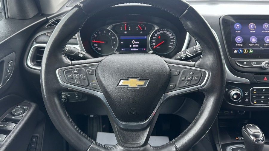 Powered by a 1.5L turbocharged 4-cylinder engine and paired with an automatic transmission, this Equinox Premier delivers a smooth, efficient drive with all-wheel-drive confidence. With 91,184 km, a grey exterior, and a black leather interior, it presents refined and well cared for. Features include dual-zone climate control, heated and cooled front seats, heated steering wheel, power and memory seats, a power liftgate, wireless phone charging, Apple CarPlay, Android Auto, SiriusXM, keyless entry with push-button start, remote start, auxiliary power ports, and a 360-degree reverse camera.