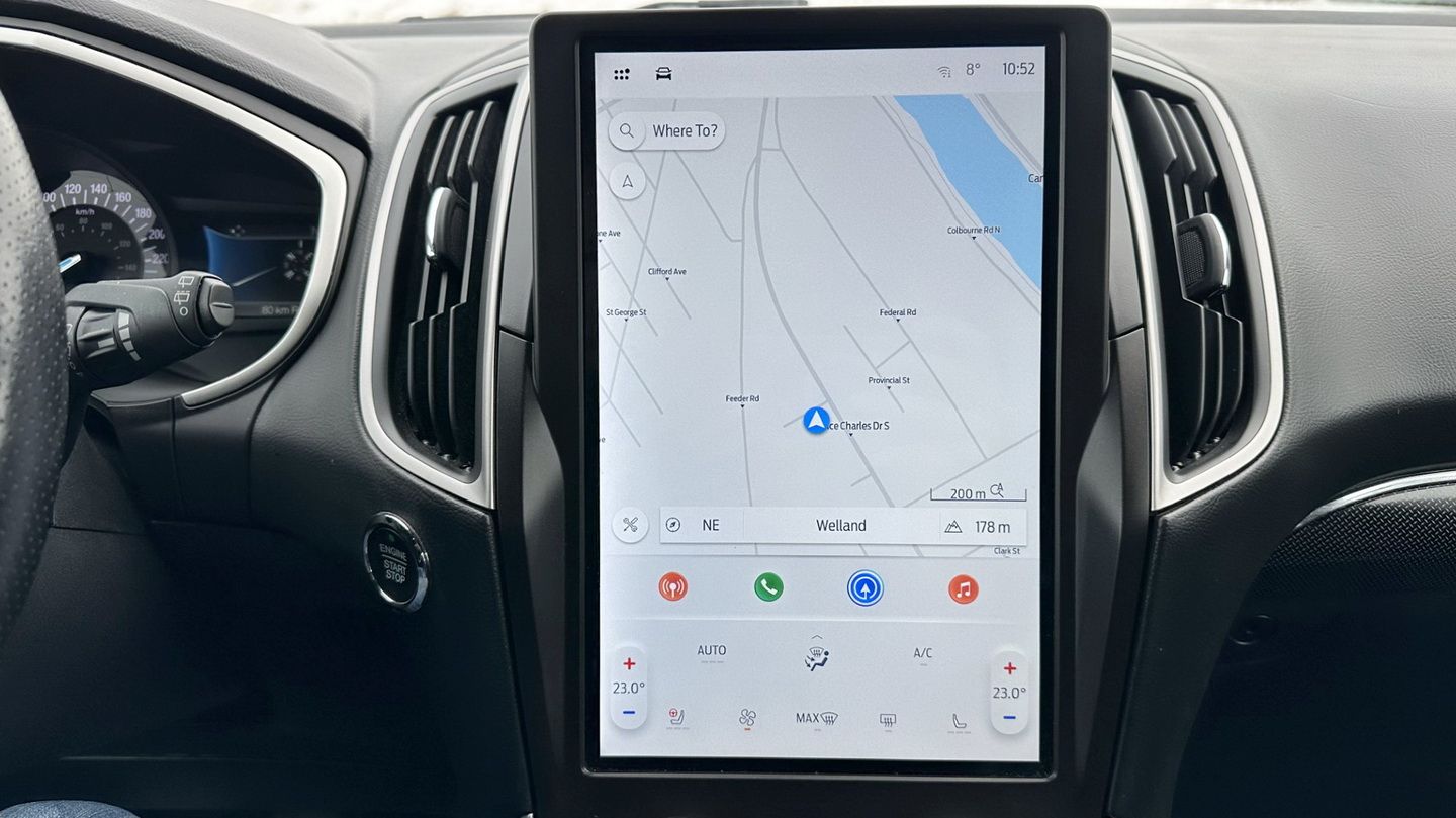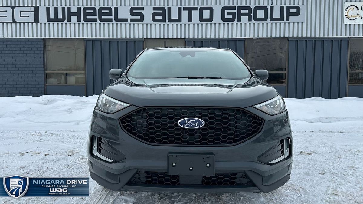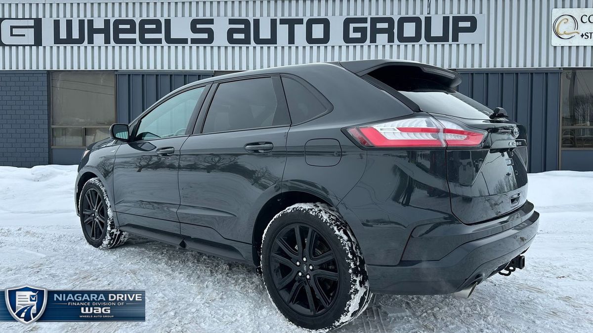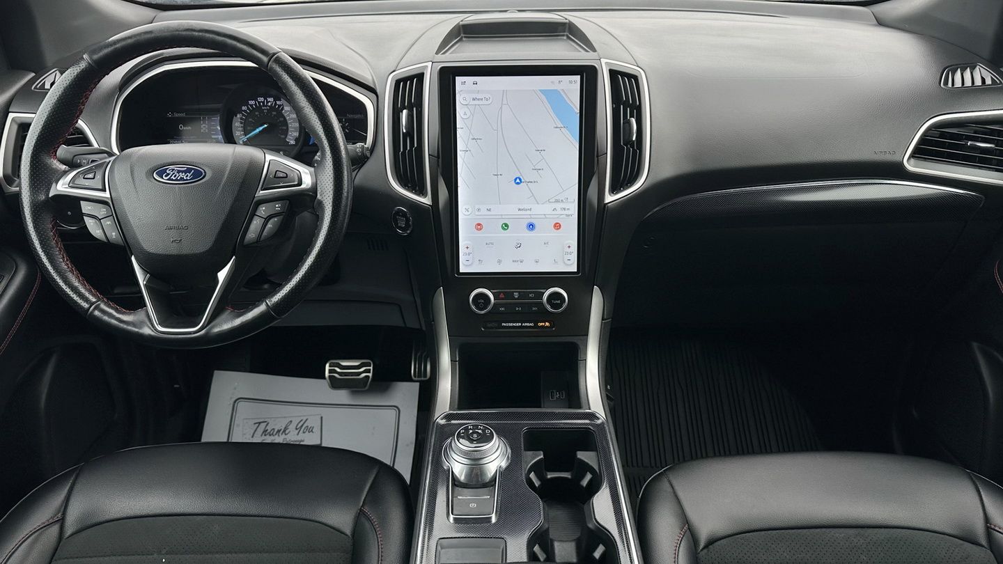 Powered by a 2.0L turbocharged 4-cylinder engine and paired with an automatic transmission, this Edge ST-Line delivers responsive performance with all-wheel-drive confidence. With 224,846 km, a grey exterior, and a black leather interior, it maintains a sharp, sporty appearance. Features include navigation, dual-zone climate control, power seats, heated seats, heated steering wheel, Apple CarPlay, Android Auto, SiriusXM, keyless entry with push-button start, remote start, auxiliary power ports, a reverse camera, rear parking sensors, and a panoramic sunroof.