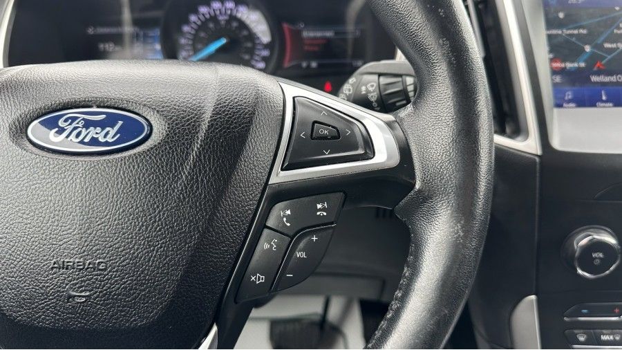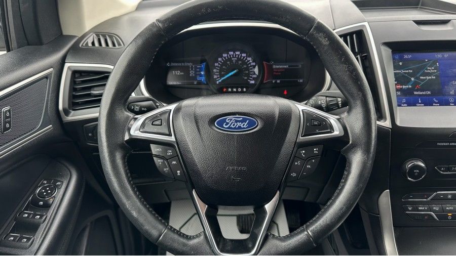 Powered by a 2.0L turbocharged 4-cylinder engine and paired with an automatic transmission, this Edge SEL delivers smooth performance with all-wheel-drive confidence for year-round driving. With 126,160 km, a black exterior, and a black leather interior, it offers a sharp and practical setup. Features include navigation, dual-zone climate control, power seats, heated seats, heated steering wheel, Apple CarPlay, Android Auto, SiriusXM, keyless entry with push-button start, remote start, auxiliary power ports, a reverse camera, and rear parking sensors.