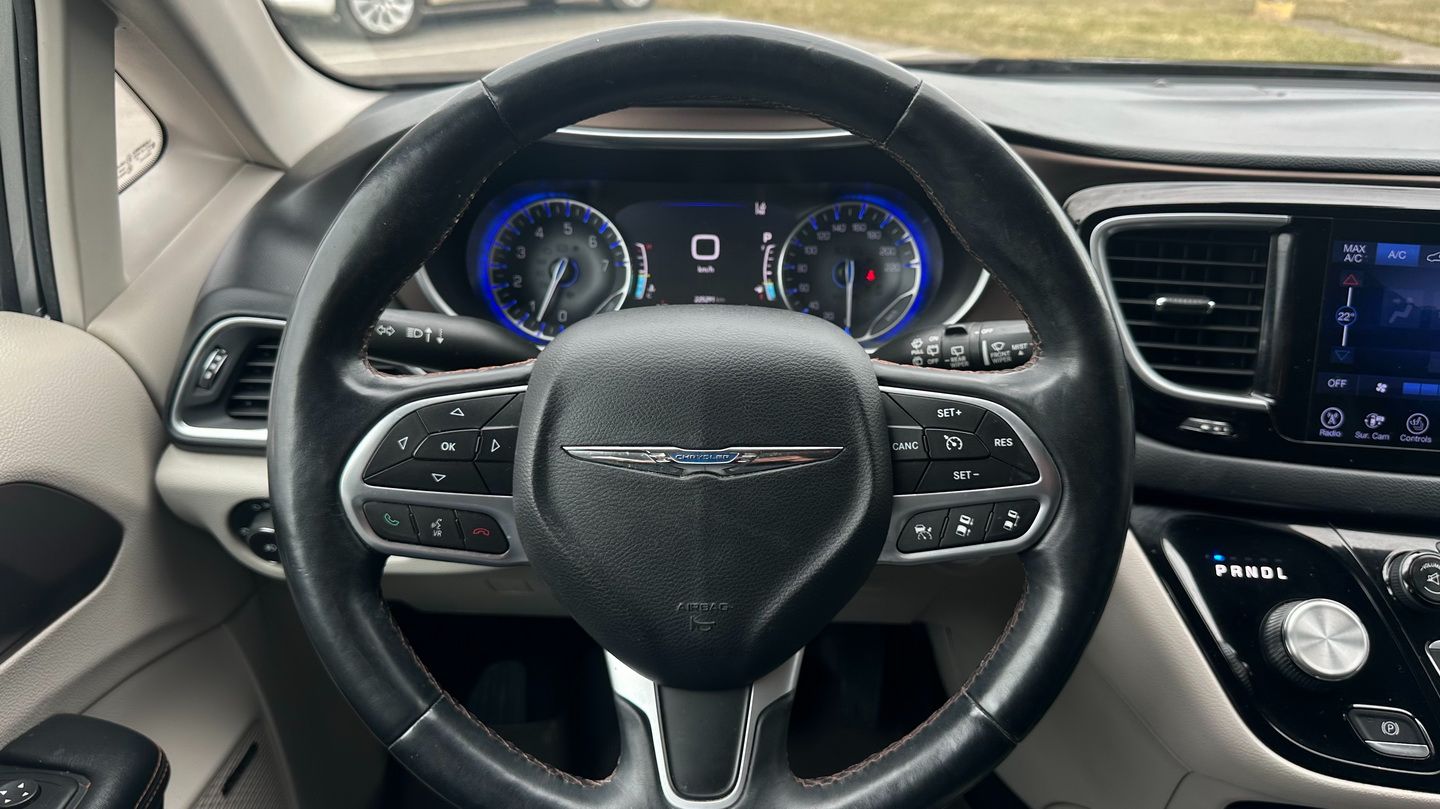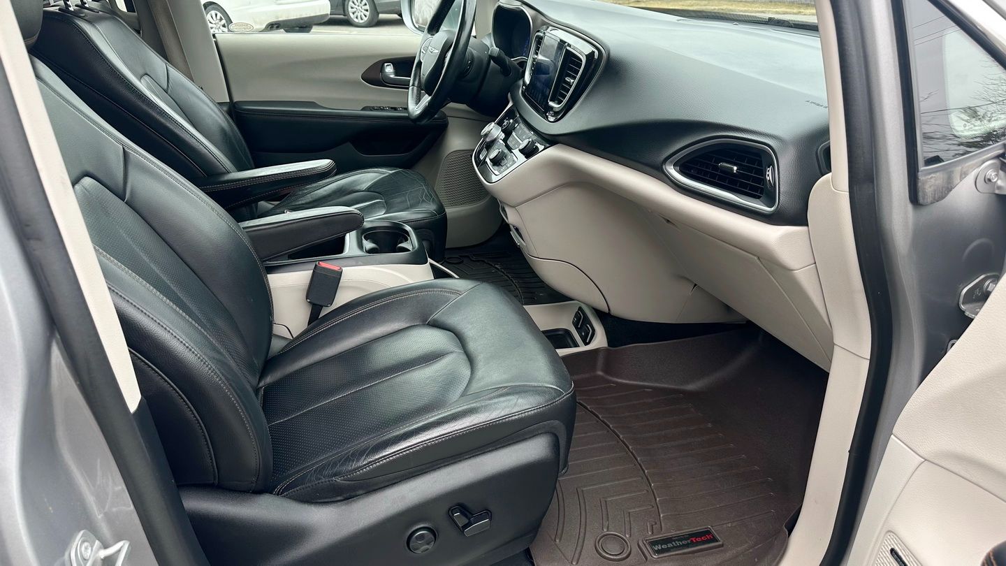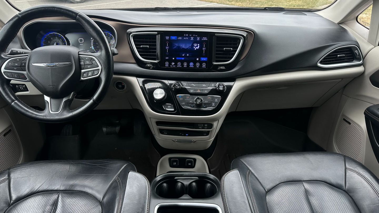Powered by a 3.6L V6 engine and paired with an automatic transmission, this Pacifica Touring-L Plus offers smooth performance and excellent family practicality. With 225,291 km, a silver exterior, and a black leather interior, it remains a well-equipped and spacious minivan designed for comfort and versatility. Features include navigation, tri-zone climate control, power seats, heated seats, heated steering wheel, Apple CarPlay capability via USB, SiriusXM, keyless entry with push-button start, remote start, auxiliary power ports, and a reverse camera.