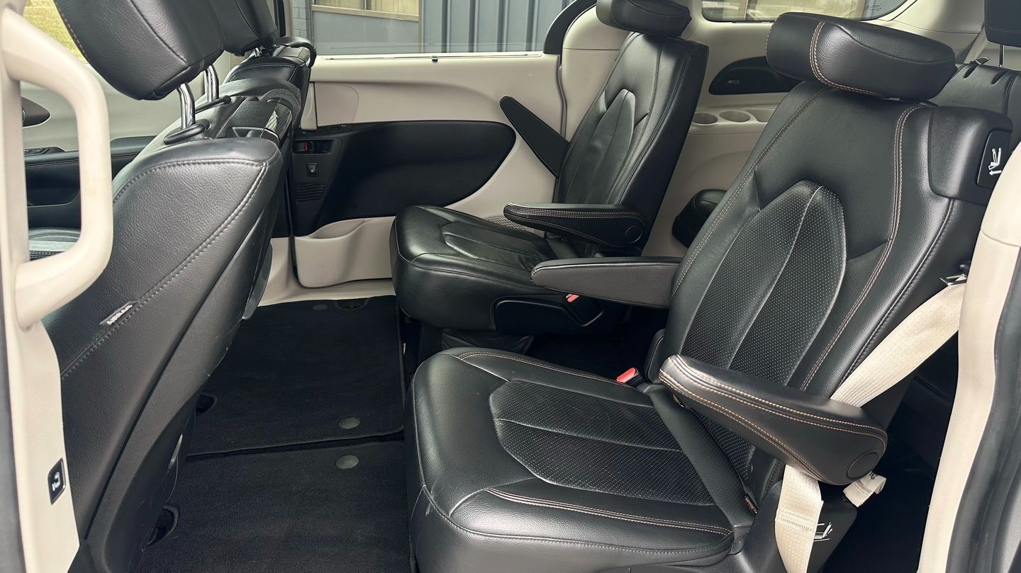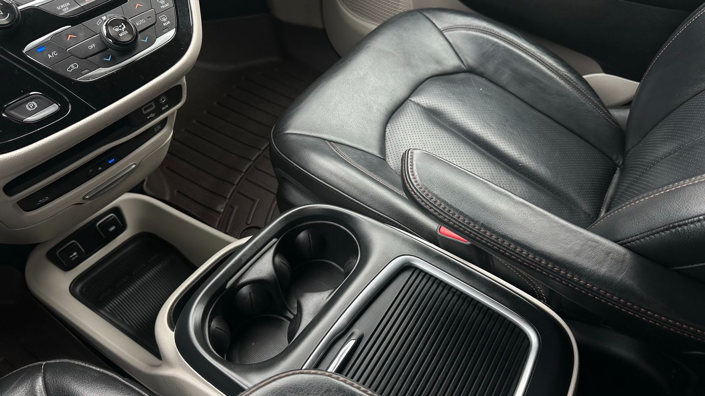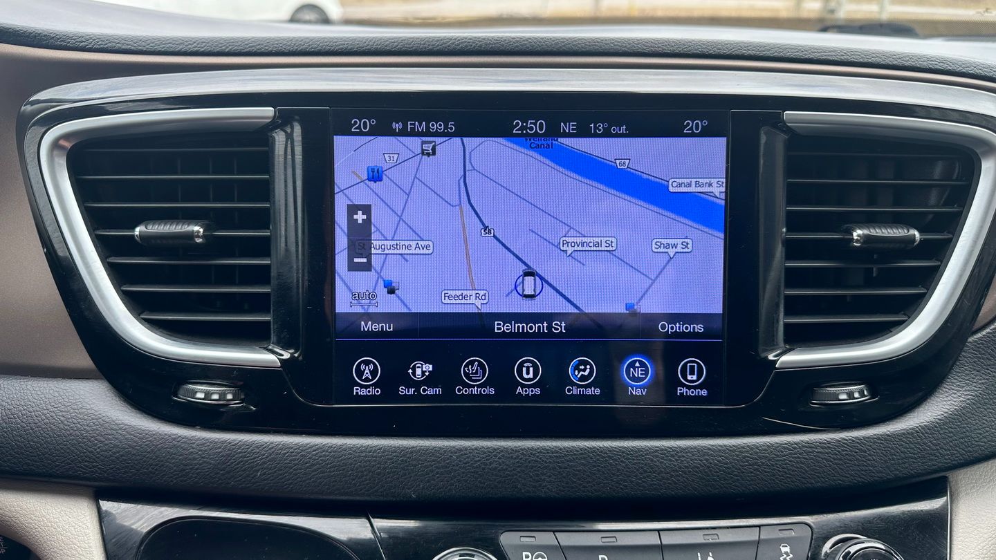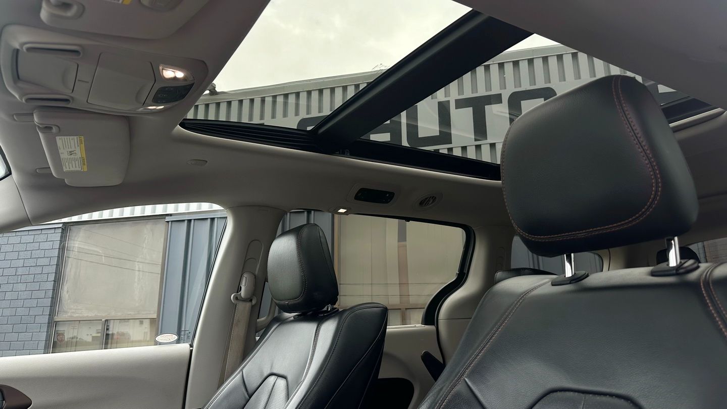 Powered by a 3.6L V6 engine and paired with an automatic transmission, this Pacifica Touring-L Plus offers smooth performance and excellent family practicality. With 225,291 km, a silver exterior, and a black leather interior, it remains a well-equipped and spacious minivan designed for comfort and versatility. Features include navigation, tri-zone climate control, power seats, heated seats, heated steering wheel, Apple CarPlay capability via USB, SiriusXM, keyless entry with push-button start, remote start, auxiliary power ports, and a reverse camera.