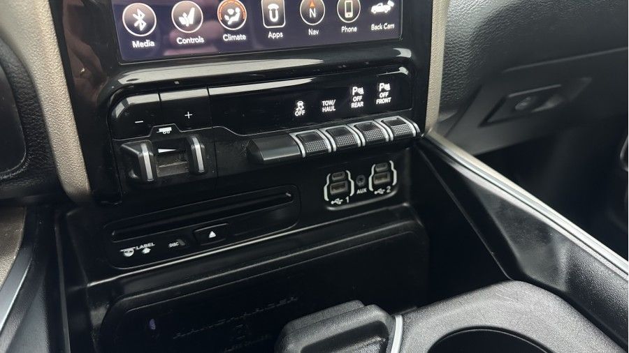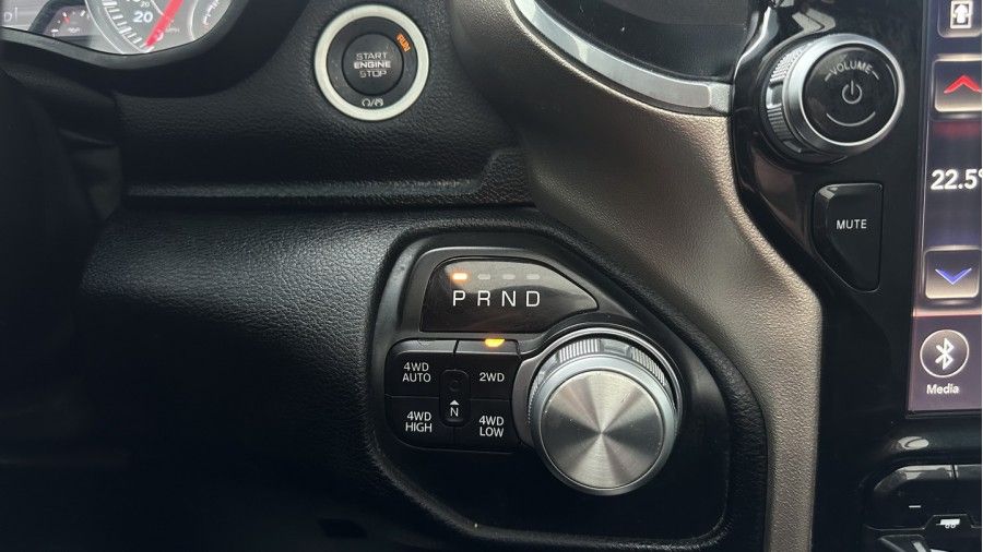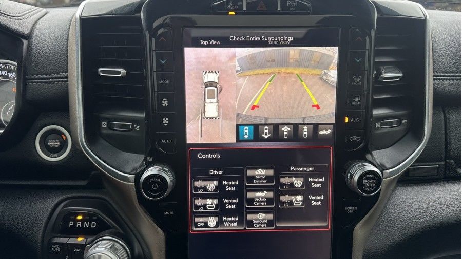 This Laramie comes loaded with upscale features such as a panoramic sunroof, Harman/Kardon sound system, surround view camera, front and rear parking sensors, and a sliding rear window. With on-demand 4x4 and a 5.5-foot bed, it balances everyday comfort with real truck capability.